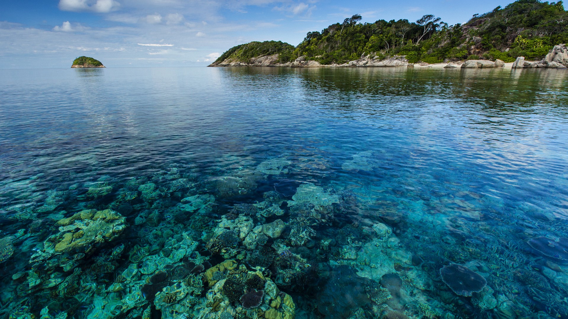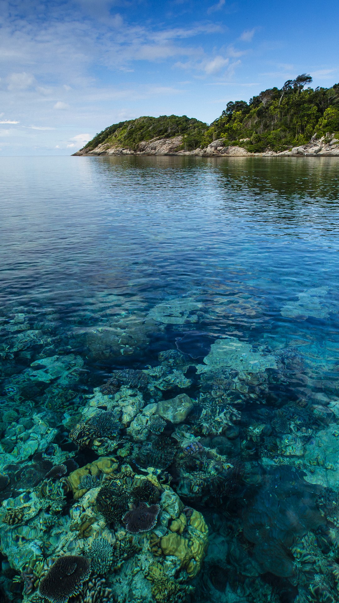 [윈도우 스마트폰 고해상도 바탕화면 잠금하면 모음] 996. 인도네시아 아남바스 군도 풀라우 린탕의 열대섬을 둘러싼 산호의 바다경관 / Seascape of coral surrounding a tropical island, Pulau Lintang, Anambas A..