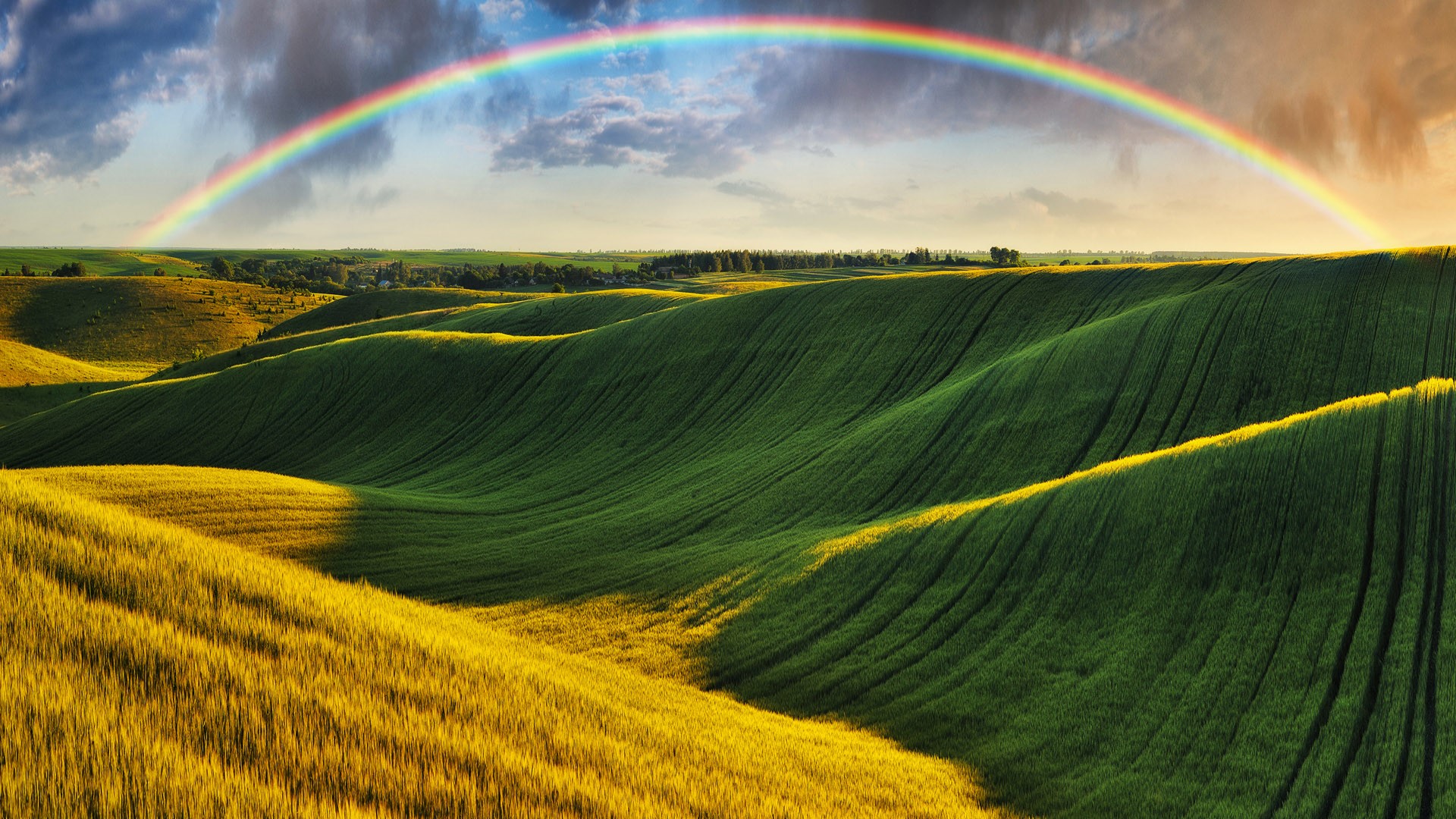[윈도우 스마트폰 고해상도 바탕화면 잠금하면 모음] 1255. 우크라이나의 푸른 들판 위에 펼쳐진 무지개 / Scenic view of rainbow over green field, Ukraine