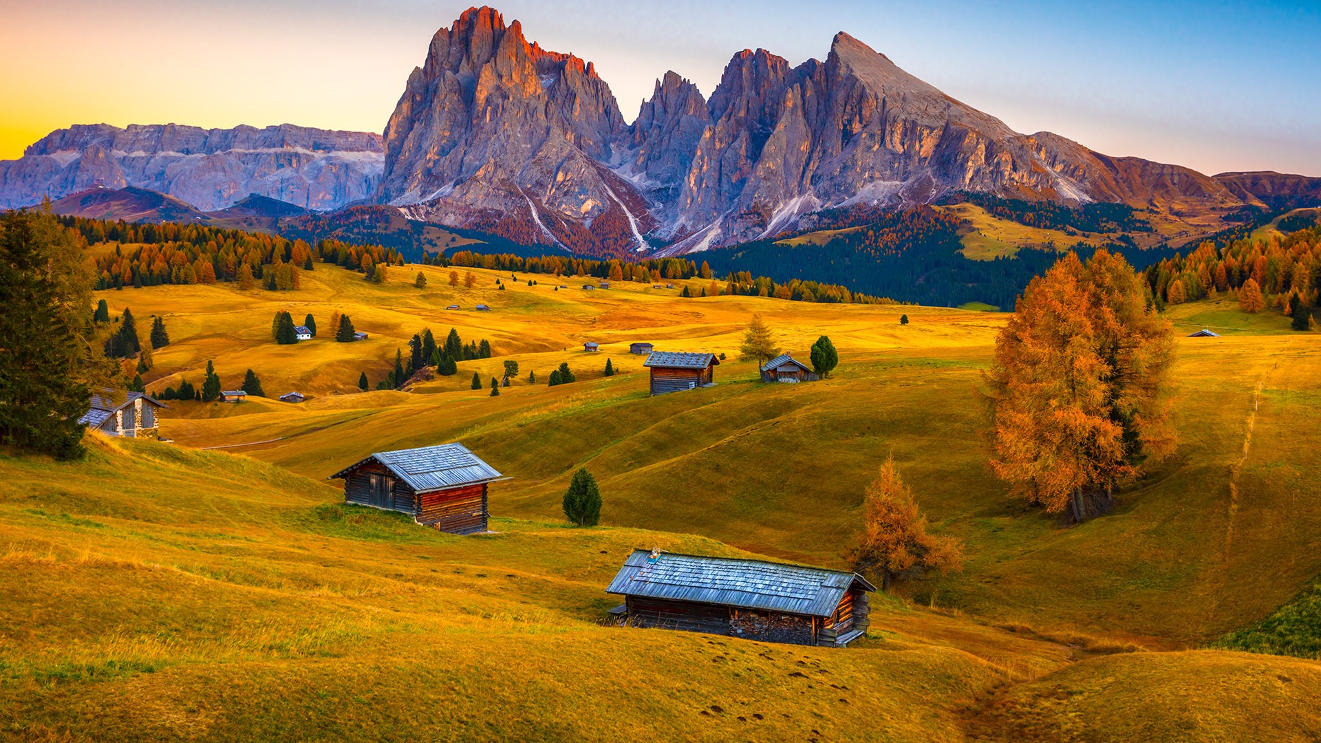 [윈도우 스마트폰 고해상도 바탕화면 잠금하면 모음] 100. 이탈리아 트렌티노알토 아데게, 알프스 돌로미테스, 전형적인 고산 오두막이 있는 목초지 / Pasture with typical alpine hut, Dolomites, Alps, Trent..