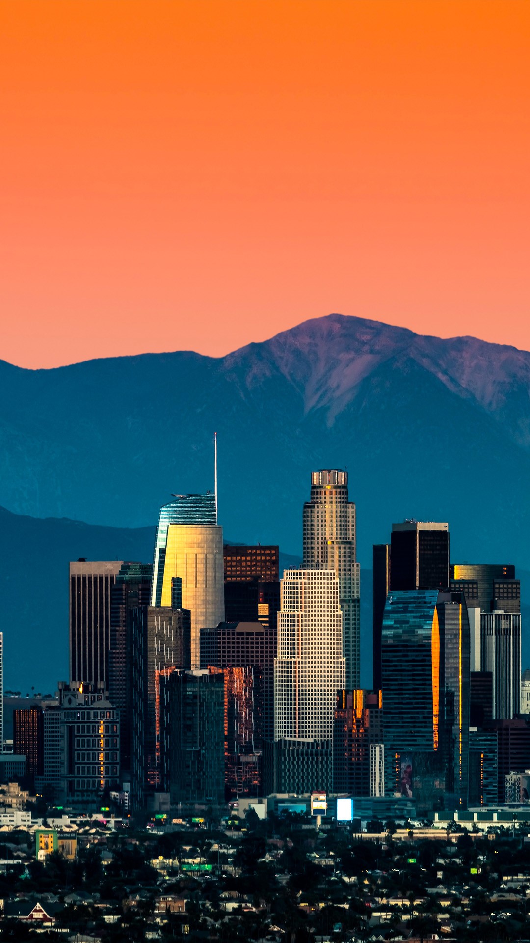 [윈도우 스마트폰 고해상도 바탕화면 잠금하면 모음] 1314. 미국 캘리포니아 주 해질녘의 클래식 뷰에 있는 로스앤젤레스 스카이라인 / Los Angeles Skyline at sunset classic view, California, USA