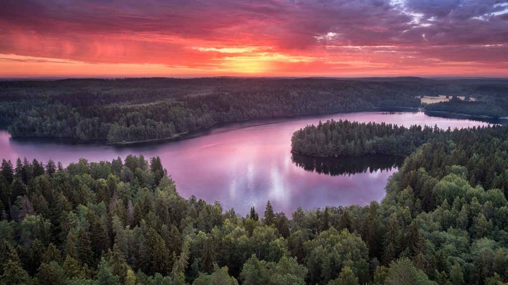 [윈도우 스마트폰 고해상도 바탕화면 잠금하면 모음] 1840. 핀란드 흐메린나 국립공원 아우란코의 여름 일출과 호수가 어우러진 풍경 / Landscape with sunrise and lake at summer in national park Aulanko, Hämeen..