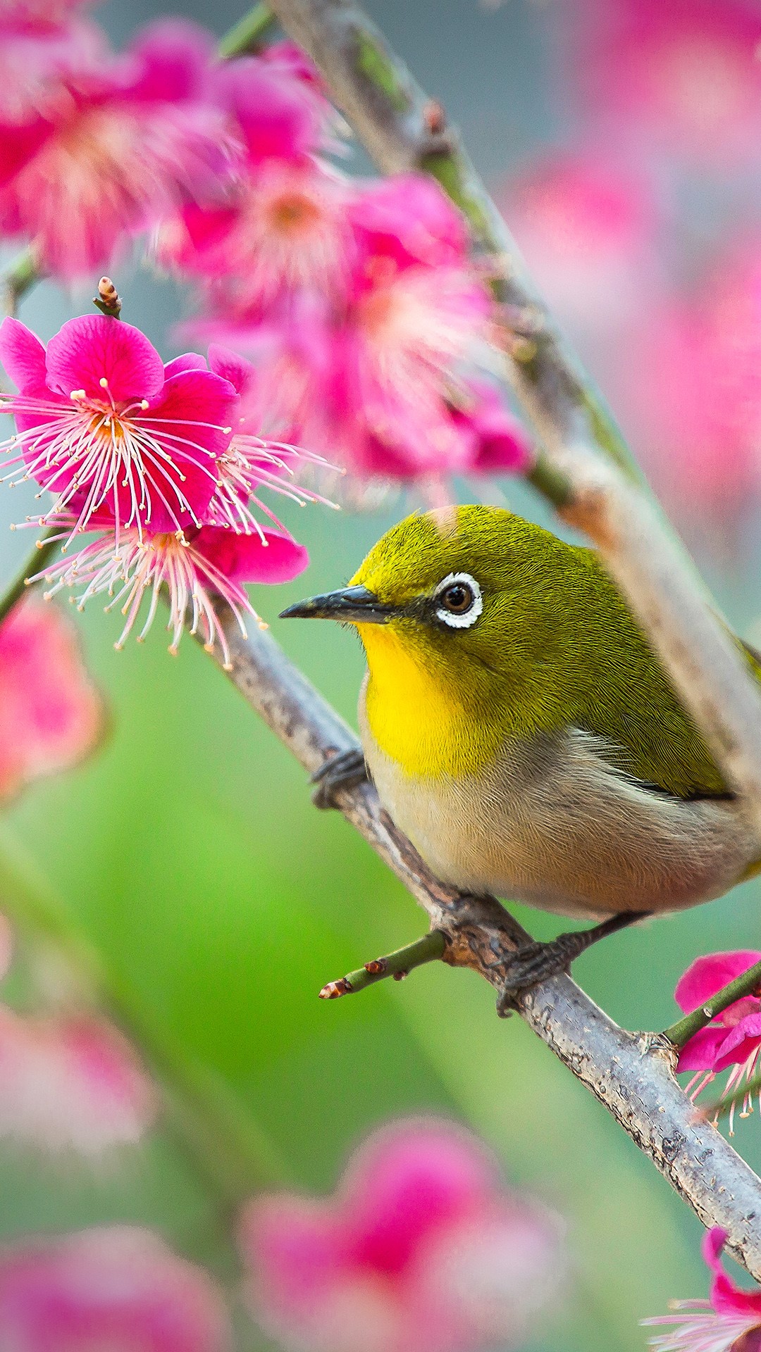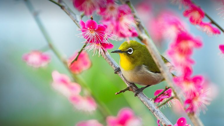 [윈도우 스마트폰 고해상도 바탕화면 잠금하면 모음] 1911. 일본 고베 아미시히키 신사 매화나무 가지에 있는 동박새(조스테롭스자포니쿠스) / Japanese white-eye (Zosterops japonicus) on the plum tree branch,..