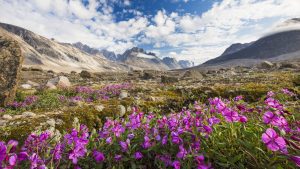 [윈도우 스마트폰 고해상도 바탕화면 잠금하면 모음] 2430. 캐나다 판니르퉁 악샤야크 고개, 자줏빛 고산 꽃과 산경관 / Purple alpine flowers and mountain landscape, Akshayak Pass, Pangnirtung, Canada