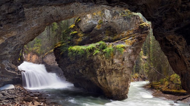 [윈도우 스마트폰 고해상도 바탕화면 잠금하면 모음] 245. 캐나다 앨버타 주 밴프 국립공원 존스턴 캐년 동굴과 폭포 / Cave and Waterfall, Johnston Canyon, Banff National Park, Alberta, Canada