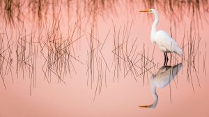 [윈도우 스마트폰 고해상도 바탕화면 잠금하면 모음] 2692. 미국 플로리다주 에버글레이즈 국립공원의 핑크빛 습지에서 해뜰때의 큰 후회 / Great egret at sunrise in a pink colored marsh, Everglades national p..