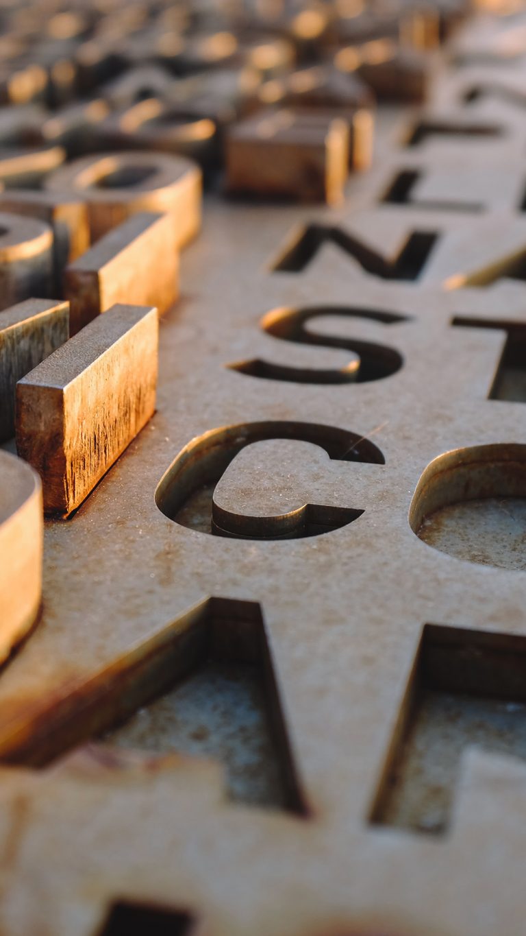 [윈도우 스마트폰 고해상도 바탕화면 잠금하면 모음] 3162. 오래된 금속 알파벳의 고각 보기 / High angle view of old metallic alphabets