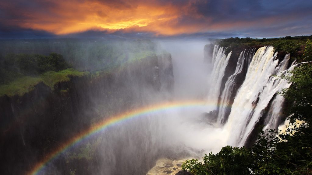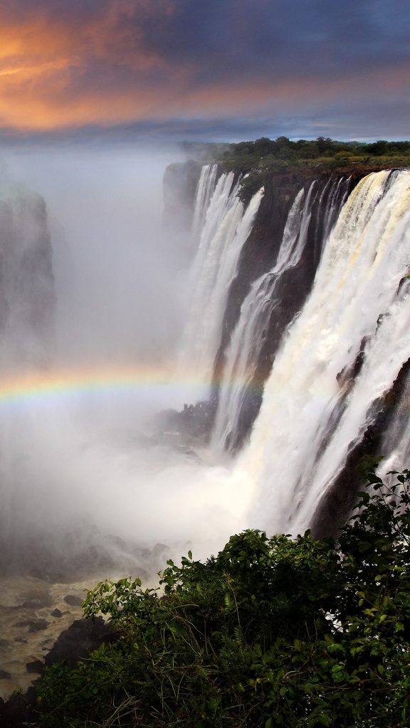 [윈도우 스마트폰 고해상도 바탕화면 잠금하면 모음] 409. 빅토리아 폭포 일몰, 무지개, 리빙스톤, 잠비아 / Victoria Falls sunset with rainbow, Livingstone, Zambia