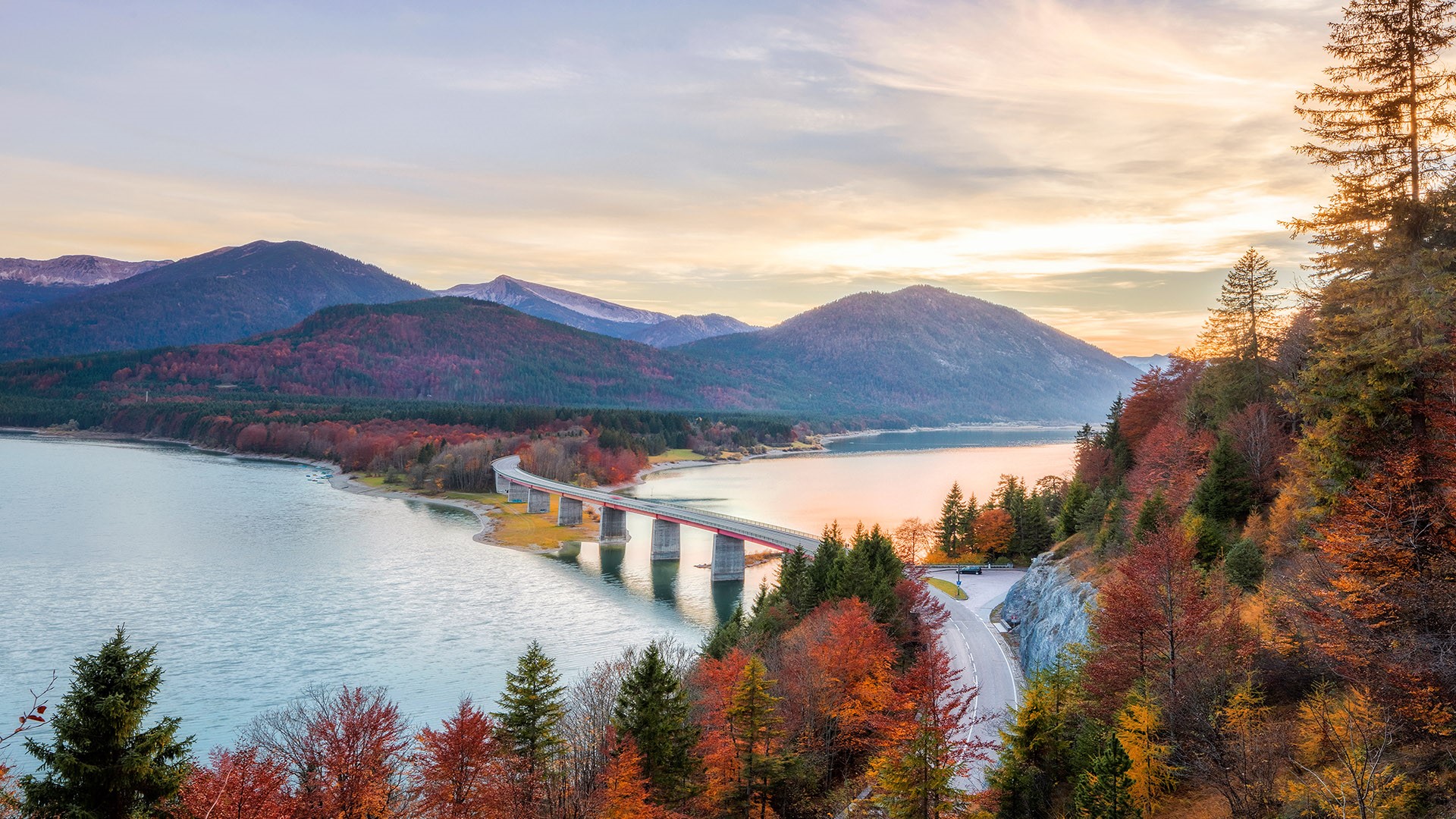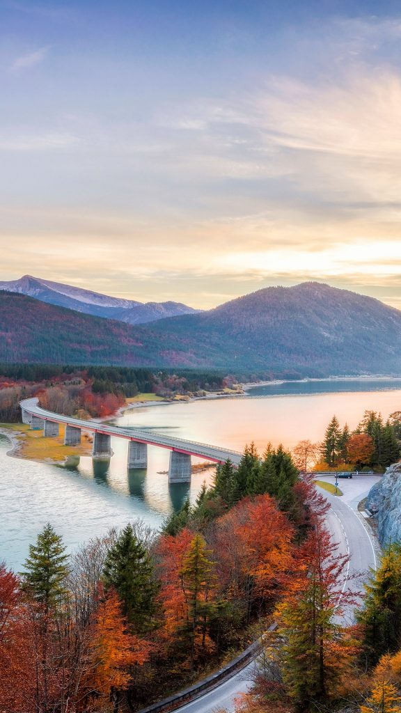 [윈도우 스마트폰 고해상도 바탕화면 잠금하면 모음] 615. 독일 바이에른주 실벤슈타인 호수의 Faller-Clam-Brücke 도로교 / Faller-Klamm-Brücke road bridge over Lake Sylvenstein in autumn, Bavaria, Germany